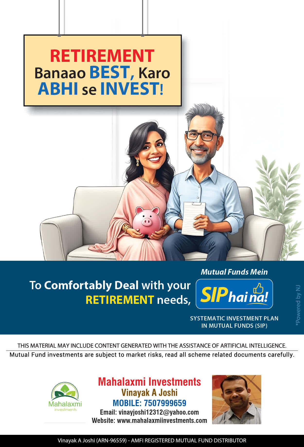 At, Mahalaxmi Investments, our mission is to provide our clients with the best solutions in wealth creation and wealth management. We are driven to provide clients with simple, unbiased, and uncluttered professional advice that adds value to their quality of life and results in actionable solutions.
